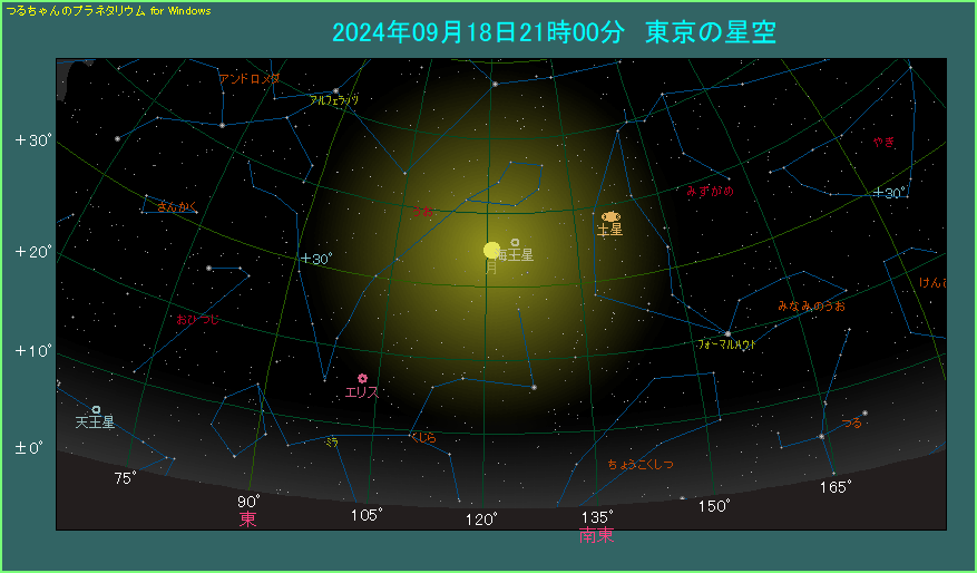21時ごろ南東のやや低い位置にスーパームーンが見えます。この機会に大きな満月を、ぜひご覧になってください。