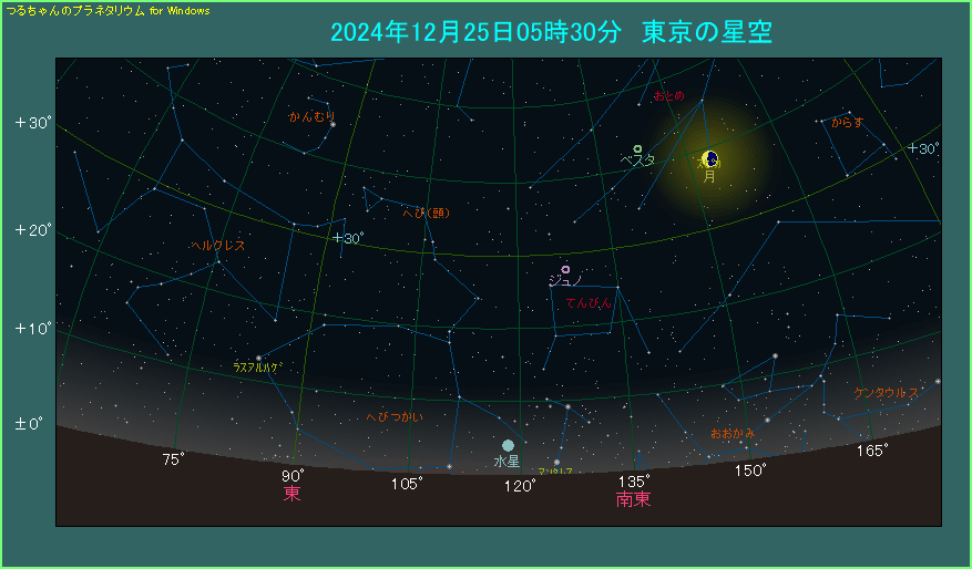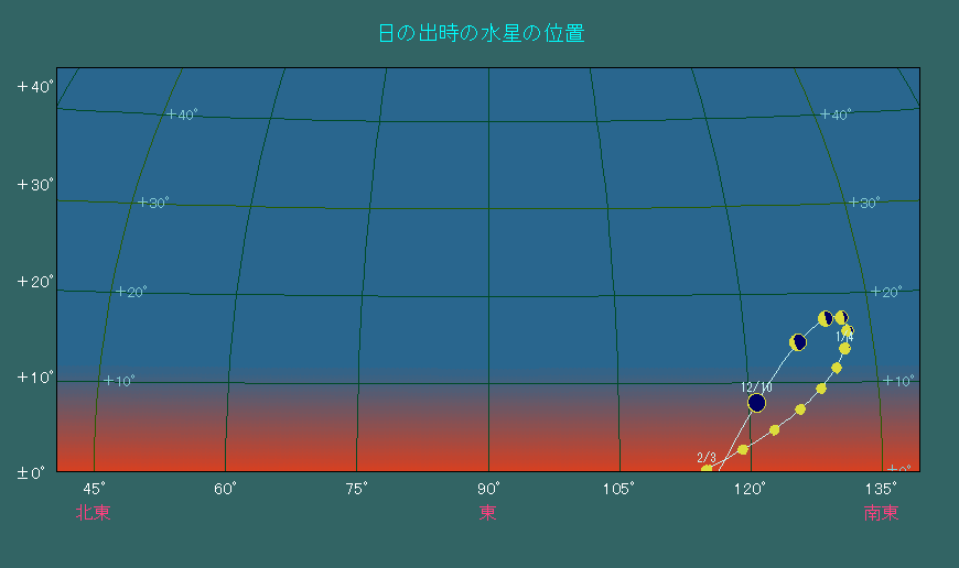 12月25日は水星が太陽の西側へ最も離れる西方最大離角となります。