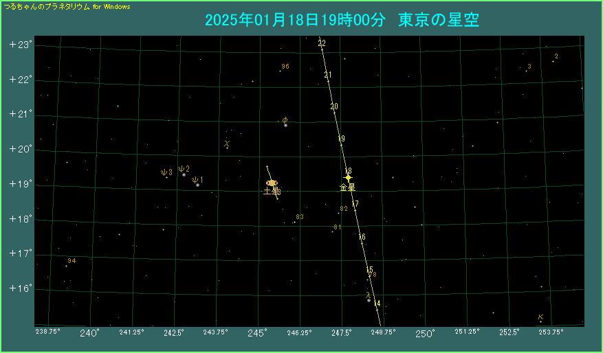金星(1日間隔)と土星(5日間隔)の位置変化 |