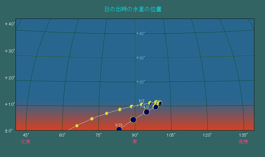 日の出時刻における水星の位置変化 |