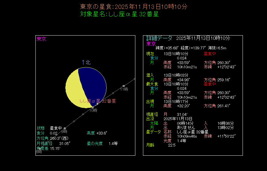 11月13日は東日本と北日本でレグルス食がみられます。