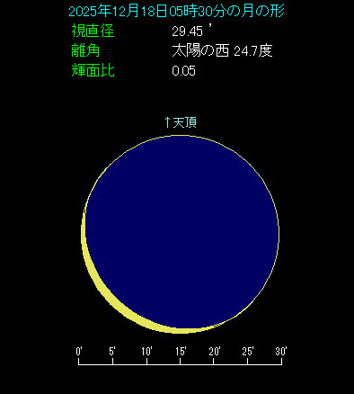 時間がたつと高度が上がって見やすくなりますが、その分だけ太陽が地平線に近づいて薄明が進みます。ほどよいタイミングでご覧ください。