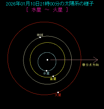 合とは惑星が太陽と同じ方向にやってくることで、地球・太陽・火星がこの順で一直線に並びます。太陽系の図をご覧いただけば、おわかりいただけると思います。