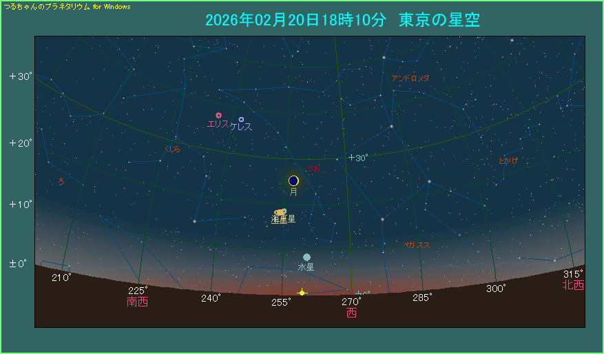 2月20日は水星が東方最大離角となり、夕方に見ごろとなります。