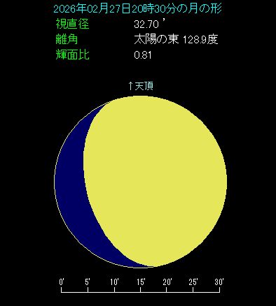 東京で20時30分ごろ、真南の方角を大きく見上げてください。天頂に近い所に丸みを帯びた月が見えます。高度は80.5度と、80度を超えています。月の高度が80度を超えるのがそれほどレアな事とは思いませんが、今回は80度にこだわりましたので、星図の時刻をよく使う21時から30分早めました。