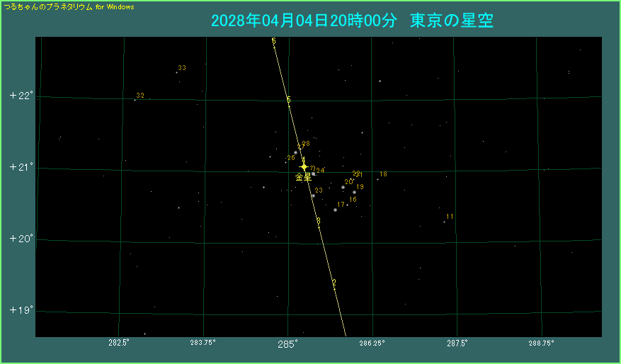 すばるに対する金星の経路 |