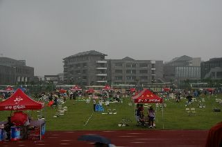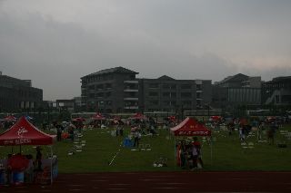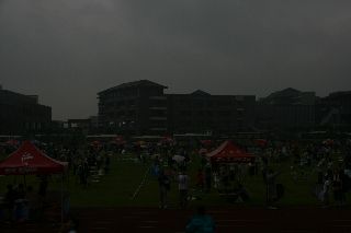 さて、皆既日食当日。上海は朝から曇り空。予想通りいやな雰囲気。観測場所は上海から車で1時間半ほどの地点なのでバスで移動する。案の定、途中で雨が降り出した。観測場所は学校のグラウンドだが、所々で水たまりができている。いきなりトーンダウンもいいところ。