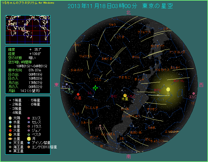 2013年11月18日3時頃(極大時刻から2時間後)の出現イメージ |