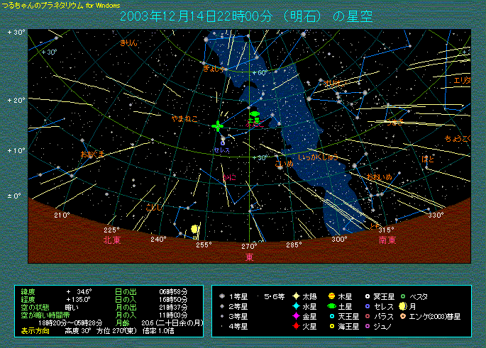 2003年12月14日22時 ふたご座流星群の出現イメージ |