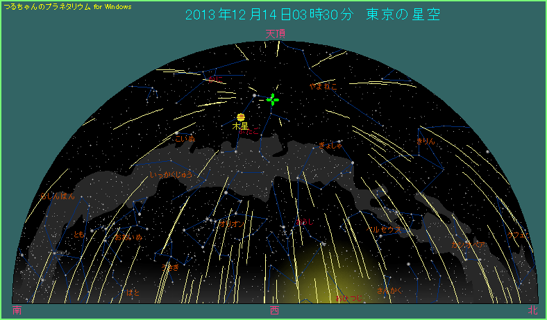 2013年12月14日3時30分頃の出現イメージ 月が沈んでから暗夜で観測 |