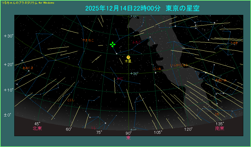 2025年12月14日22時ごろの流星出現イメージ(東の方角) |