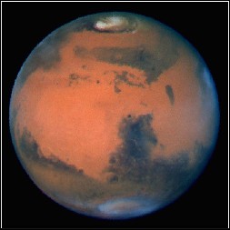 火星には非常に薄いのですが大気があります。また、火星を天体望遠鏡で観測すると北極や南極付近に白い極冠が見え、季節とともに形や大きさが変わります。極冠は氷でできており、冬になると大きくなり、夏になると小さくなりみえなくなってしまいます。また自転周期も24時間37分と地球の場合と似通っています。